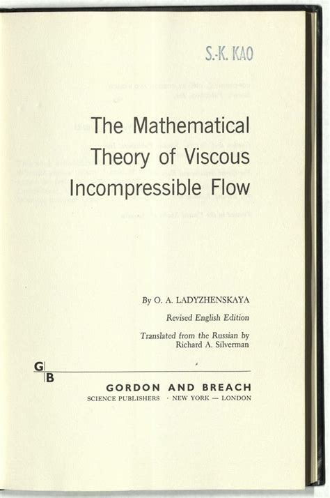 Read Online the mathematical theory of viscous incompressible flow Epub online is a convenient and frugal way to read the mathematical theory of viscous incompressible flow you love right from the comfort of your own home. Yes, there sites where you can get Epub "for free" but the ones listed below are clean from viruses and completely legal to use.